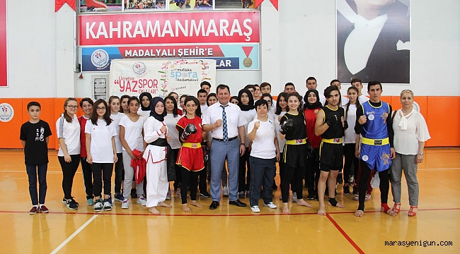 Okulların tatile girmesi ile çocukların serbest zamanlarını daha verimli kullanmaları, spor yaparak kendilerini geliştirmeleri amacıyla Gençlik Hizmetleri ve Spor İl Müdürlüğü bünyesinde il spor merkezlerinde, Yaz Spor Okulları düzenleniyor. Her yıl öğrenci sayısının artması ile birlikte İl Müdürlüğü olarak açılan spor branşı sayısını ve çeşitliği artırıyoruz. Voleybol, Basketbol, Futbol, Güreş, Tenis, Yüzme …gibi popüler bir çok branşın yanında yakın zamanda olimpik birer branş olan Eskrim Kano ve Kürek branşları da uzman antrenörler tarafın İl Müdürlüğümüz bünyesinde eğitim verilmeye başlandı. 2017 yılı Yaz Spor Okullarımızda yine Olimpik bir branş olan Okçuluğu da eklenmesi ile 26 branşta uzman antrenör ekipman ve spor tesisi ile ilimiz gençliğine hizmet vermekteyiz. Yaz Spor Okullarında eğitim alan sporcular arasında yeteneği ön plana çıkan çocuklar performans sporcusu olarak lisanslanarak yıl boyu antrenmanlara alınarak ulusal ve uluslar arası müsabakalara katılımları sağlanıyor. Birçok Avrupa ve Dünya Şampiyonu yaz spor okullarında keşfedilmiştir. Yaz Spor Okullarının açılışı Spor Genel Müdürlüğümüzün Kuruluş yıl dönümü olan 29 Haziranda aynı anda Tüm İllerde gerçekleştiriliyor. Bu kapsamda Kahramanmaraş Gençlik Hizmetleri ve Spor İl Müdürlüğü Yaz Spor Okulları açılış törenini Spor Genel Müdürlüğümüzün 79. Kuruluş yıl dönümü, 29 Haziran tarihinde Osman Sayın Spor Salonunda gerçekleştirmiş bulunmaktayız. Açılış törenine Veliler, Sporcular, Antrenörler, Kurum Personeli ve vatandaşların yoğun katılımıyla gerçekleştirildi. Tören Saygı duruşu ve İstiklal Marşımızın okunmasıyla başlandı. Gençlik Hizmetleri ve Spor İl Müdürü Ali İhsan Kabakcı’nın yaptığı açılış konuşmasının ardından Yaz Spor Okullarında eğitim alan öğrenciler müzik eşliğinde, seremoni yürüyüşü gerçekleştirerek tribündeki yerlerini aldılar. Akabinde Sırasıyla Taekwondo, Judo, Wushu ve Geleneksel Mas Güreşi gösterilerinin ardından program tamamlandı. Programın sonunda Gençlik Hizmetleri ve Spor İl Müdürü Ali İhsan Kabakcı ve Onikişubat Gençlik Hizmetleri ve Spor İlçe Müdürü Kadir Gemci Geleneksel Spor Dallarımızdan Mas Güreşini gençlere tanıtmak adına bir müsabaka gerçekleştirdiler.