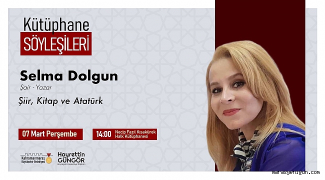 Büyükşehir Belediyesinin düzenlediği Kütüphane Söyleşileri’nin bu haftaki konuğu Şair – Yazar Selma Dolgun olacak. 7 Mart Perşembe günü NFK Halk Kütüphanesi’nde düzenlenecek söyleşi saat 14.00’da başlayacak.