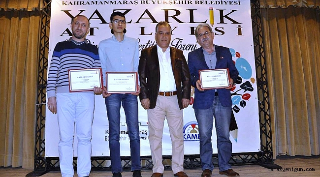 Kahramanmaraş Büyükşehir Belediyesi bünyesinde Yazarlık Atölyesi’nde sertifikalar dağıtıldı.