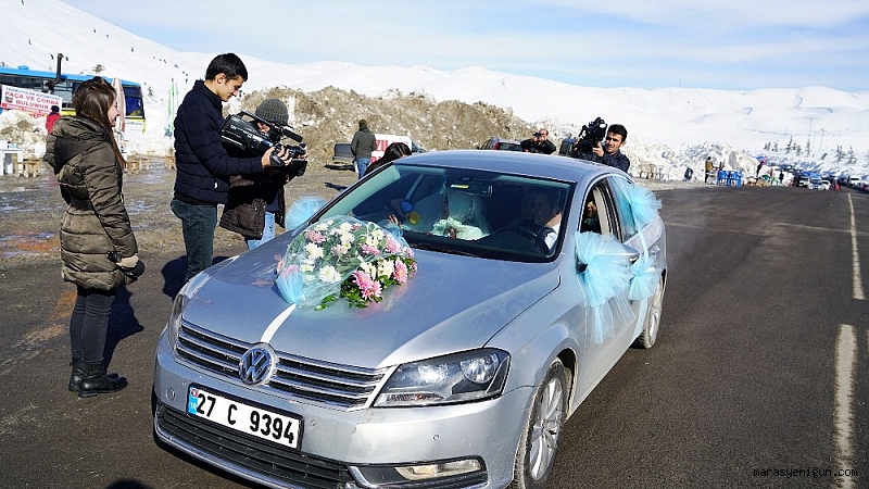 Kahramanmaraş Büyükşehir Belediyesi tarafından yapılarak hizmete sunulan Yedikuyular Kayak Merkezi’ne gelin geldi.