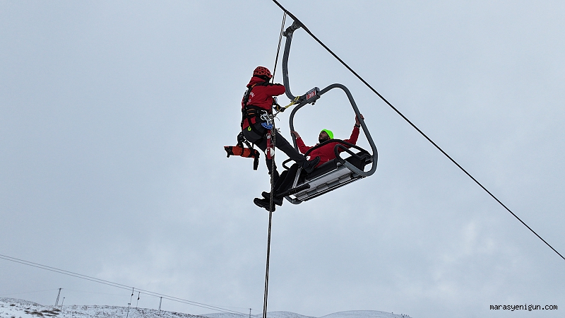 Büyükşehir Belediyesi İtfaiyesi, JAK, AFAD, 112 Acil Sağlık, UMKE, AKUT ve Yedikuyular Kayak Merkezi Kurtarma Ekibi iş birliğiyle Yedikuyular Kayak Merkezi’nde gerçeği aratmayan kurtarma tatbikatı gerçekleştirildi. Zorlu tatbikatta kurumların hızlı ve etkin müdahalesi ile uyumlu çalışması takdir topladı. Afet ve acil durumlarda görevli personellerin becerilerini artırmak, olaylara müdahale hızını artırarak can ve mal kaybını en aza indirmek ve paydaş kurumlarla koordinasyonu artırmak için faaliyetlerini sürdüren Kahramanmaraş Büyükşehir Belediyesi, Yedikuyular Kayak Merkezi’nde gerçeği aratmayan kurtarma tatbikatı gerçekleştirdi. Büyükşehir Belediyesi İtfaiyesi, JAK, AFAD, 112 Acil Sağlık, UMKE, AKUT ve Yedikuyular Kayak Merkezi Kurtarma Ekibi iş birliğiylegerçekleştirilen tatbikatta; senaryo gereği telesiyejde mahsur kalan vatandaşlar ekipler tarafından halatlar yardımıyla güvenli bir şekilde yere indirilerek sağlık ekiplerine teslim edildi. Zorlu tatbikatta kurumların hızlı ve etkin müdahalesi ile uyumlu çalışması takdir topladı. Büyükşehir Belediyesi İtfaiye Dairesi Başkanlığından tatbikata ilişkin yapılan açıklamada; her türlü doğal afet ve acil müdahale gerektiren duruma karşı ekipman ve personel olarak hazır bulunulduğu ve bu noktada personellerin beceri ve koordinasyonunun artırılması noktasında eğitim ve tatbikatların devam ettiği belirtildi.