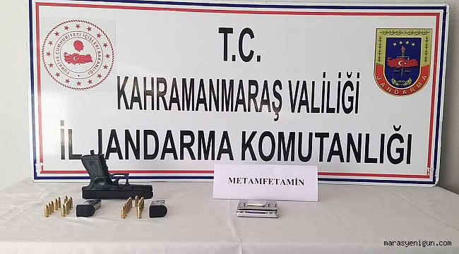 Kahramanmaraş’ın Pazarcık İlçesinde jandarma ekiplerince yapılan kontrollerde durdurulan araçta yolcu olarak bulunan bir kişinin üzerinde ruhsatsız tabanca ile uyuşturucu ele geçirildi.