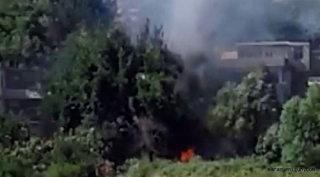 Kahramanmaraş'ta otların tutuşmasıyla birlikte zeytinlik alanda yangın çıktı. Binaların ortasında çıkan yangın çevrede paniğe neden oldu.
